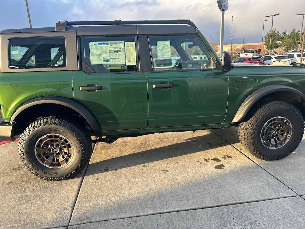 Rear Horse Emblem (Bronze), Grill Lettering Overlay Kit (Bronze), Bronco Script Badge (Matte Black), Smoked Oval, Procal Tool, Upgraded Spare Tire Carrier, Black Lug Nut Kit, 17"x8.5 Bronze Wheel Kit, 35" Goodyear Tires x5, Offroad Suspension 2" Lift Kit. Check out www.fordcustomgarage.com for more information.